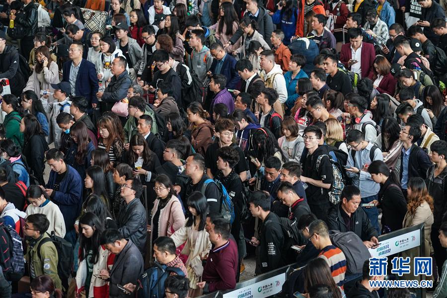 4月30日,旅客在南京火车站候车室排队候车。 “五一”小长假即将来临,出游、探亲等多股客流叠加,南京火车站迎来客流小高峰。 新华社记者 李博 摄