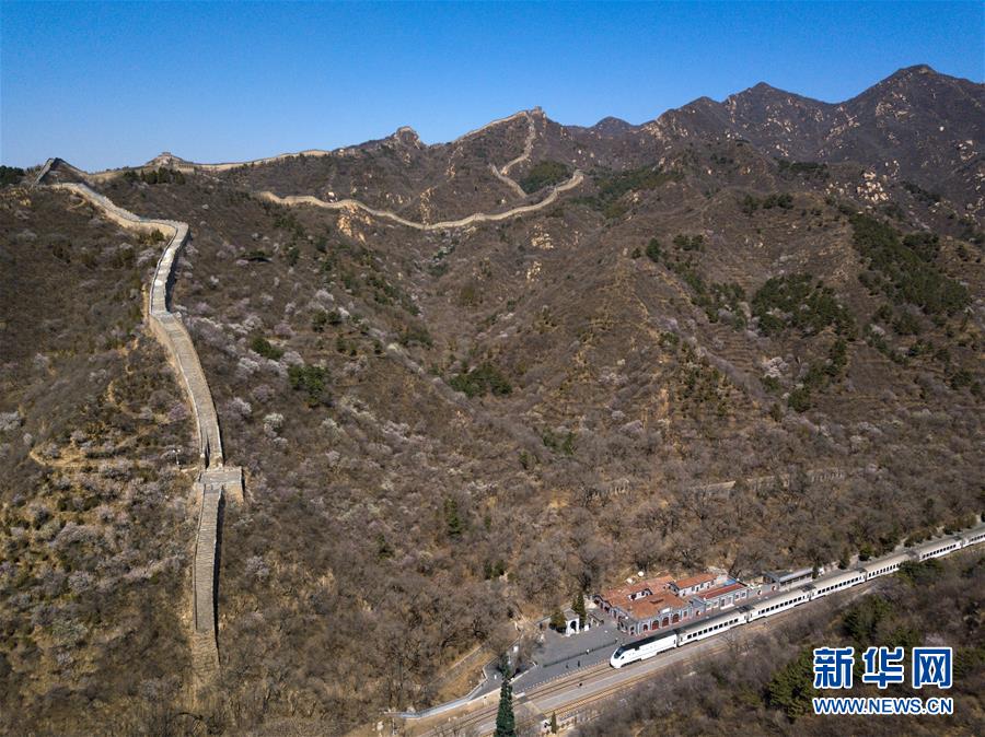 这是4月2日无人机拍摄的八达岭长城脚下的百年老站——青龙桥火车站。 延庆位于北京市西北部,是北京西北部重要的生态保育及区域生态治理协作区、生态文明示范区、国际文化体育旅游休闲区,有“北京夏都”的称谓。延庆古称夏阳川,亦称妫川,历史久远。延庆区内有龙庆峡、八达岭长城、北京野鸭湖国家湿地公园、九眼楼长城、青龙桥火车站、妫水河等丰富的自然生态资源和历史文化遗迹。延庆既是2019北京世园会园区所在地,同时也是2022年北京冬奥会和冬残奥会赛区之一。2017年9月,北京市延庆区入选全国生态文明建设示范区,2018年入选“绿水青山就是金山银山”实践创新基地名单。 4月28日,2019北京世园会正式开幕,世园会园区毗邻长城,横跨妫水河两岸,“一心、两轴、三带、四馆、多片区”的结构布局,形成了永宁瞻胜、海坨天境、隆庆花街、山水颂歌、九州花境、万方华台、百松云屏、同行广场、千翠流云、丝路花雨、芦汀林樾、世艺花舞等世园特色景致,以“绿色生活,美丽家园”为主题的2019北京世园会也成为延庆向世界递出的新的绿色名片。 新华社记者 鞠焕宗 摄