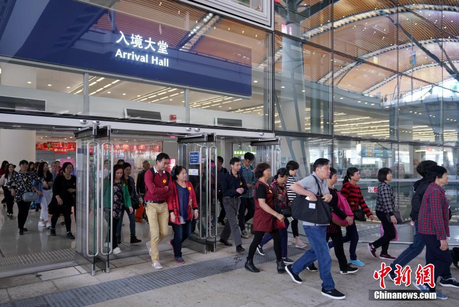 5月2日,一连四天的中国内地五一假期进入第二天,众多内地游客经港珠澳大桥抵达香港口岸。中新社记者 张炜 摄