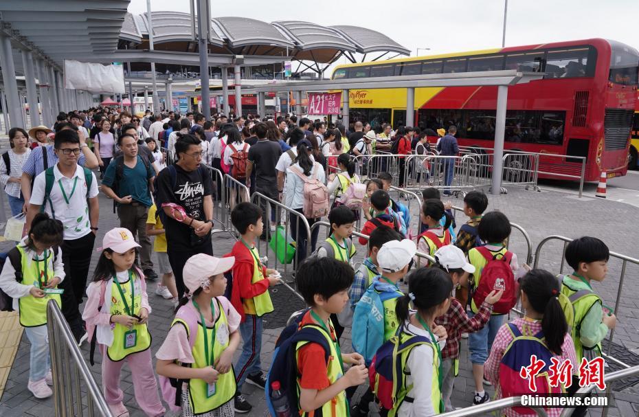 图为众多内地游客在港珠澳大桥香港口岸巴士总站准备乘车前往尖沙咀一带。中新社记者 张炜 摄