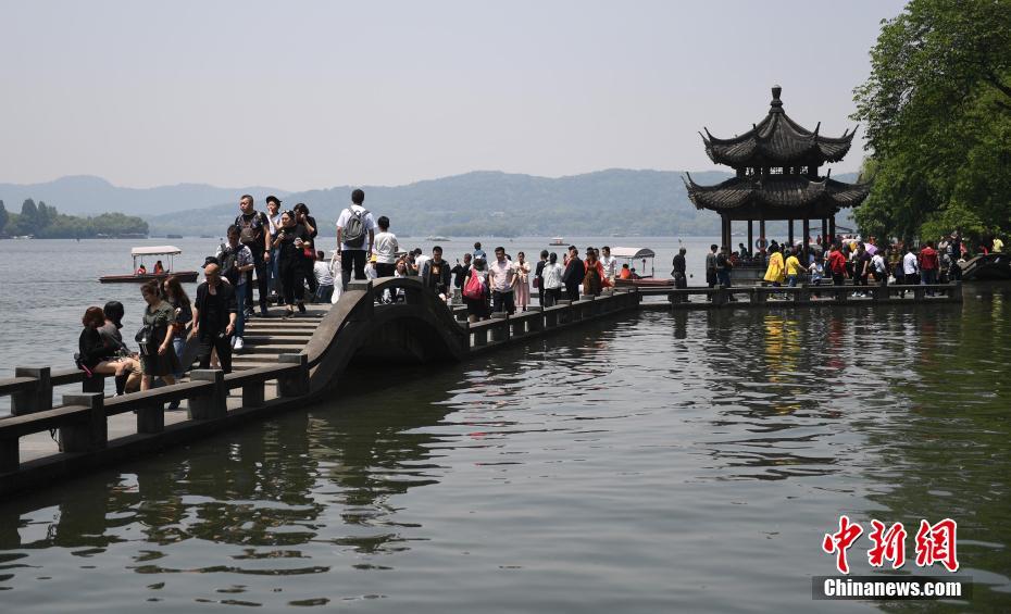 5月3日,西湖长桥公园迎来众多游客。当日,是“五一”假期的第三天,浙江杭州西湖多个景点人潮涌动。 中新社记者 王刚 摄