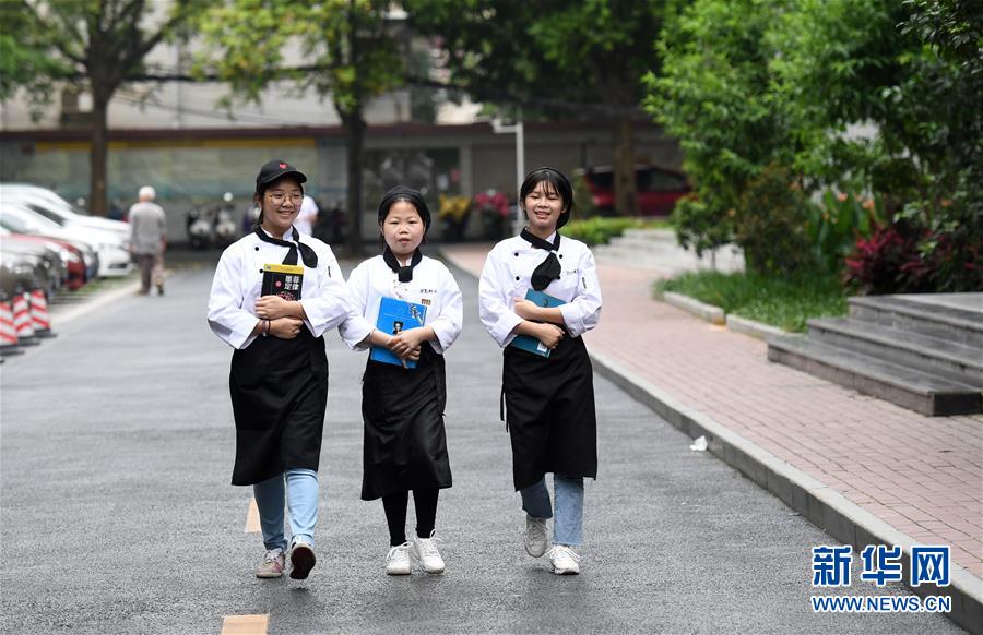 5月7日,在广西经贸职业技术学院,钟娇娇(中)和同学走在校园里。 20岁的钟娇娇出生在广西南宁市良庆区良庆镇那平村。她出生三个半月就被诊断为重型地中海贫血,一直靠接受输血维持生命。 2017年,媒体对钟娇娇的不幸遭遇进行报道后,引起社会关注。当时,在读高中的钟娇娇下定决心要像普通人一样参加高考。功夫不负有心人,2018年,钟娇娇通过高考进入了广西经贸职业技术学院学习烹饪工艺与营养学专业。现在的钟娇娇非常珍惜来之不易的校园生活。她坚信,只要心中有梦想,青春定会精彩绽放。 新华社记者陆波岸 摄