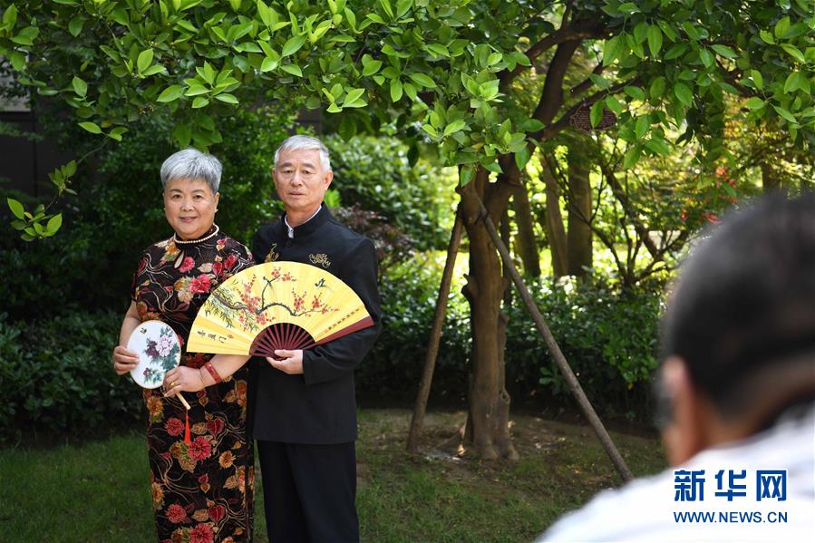 5月9日,常青街道薛河湾社区志愿者为辖区老人拍照。当日,安徽省合肥市常青街道举办“温馨五月 感恩母亲”主题活动,迎接母亲节的到来。新华社记者 刘军喜 摄