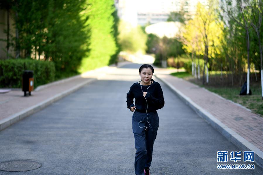 张多在小区里慢跑(5月9日摄)。新华社记者 王松 摄