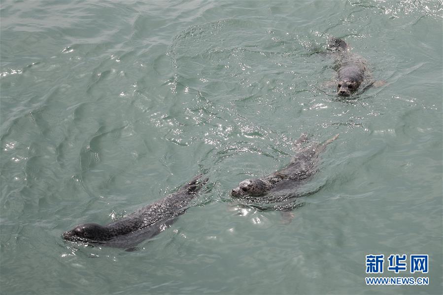 5月10日,放归的斑海豹在大连市旅顺口区虎平岛附近海域活动。当日,大连举行第二批斑海豹幼崽放归活动,37头此前被盗捕的野生斑海豹幼崽在辽宁省大连市旅顺口区虎平岛附近海域被放归大海。至此,共61头被盗捕的野生斑海豹幼崽被全部放归大海。2月11日,大连公安机关破获一起重大盗捕野生斑海豹案,在当场查获的100头野生斑海豹幼崽中,有29头已死亡。虽经全力抢救,但因过度受惊等原因,后续又有10头斑海豹幼崽死亡。4月11日,首批24头符合放归条件的野生斑海豹幼崽在大连市旅顺口区虎平岛附近海域被放归大海。新华社记者潘昱龙摄