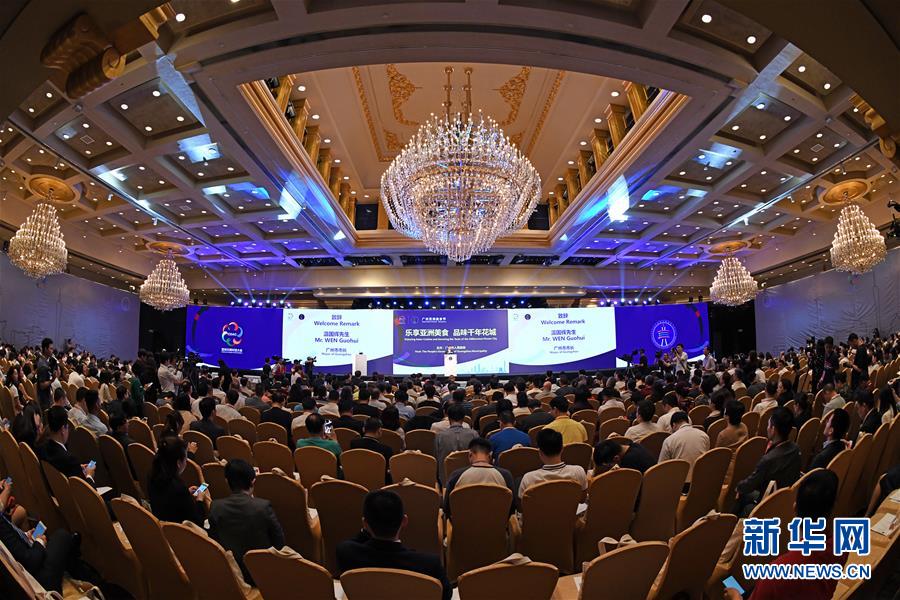 这是5月16日在广州花园酒店拍摄的广州亚洲美食节开幕式。 当日,亚洲美食节在北京奥林匹克公园庆典广场开幕,并在杭州、成都和广州同步举办。作为亚洲文明对话大会的活动之一,亚洲美食节将持续一周,通过美食文化盛宴展示绚丽多姿的亚洲文化风情和亚洲文明风采,使广大公众不出国门就能尽享亚洲各国美食。 新华社记者 梁旭 摄