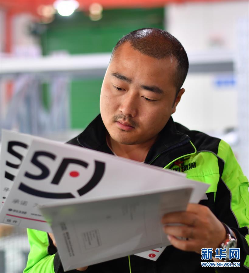 5月18日,周俊超在花垣县仓储中心物流快递收发处查看物流单。 今年29岁的周俊超是湖南省湘西土家族苗族自治州保靖县复兴镇人,今年3月加入了花垣县一家快递物流公司,成为了一名乡村快递小哥。 周俊超和同事们每天上午8时开始工作,对前一天揽收的快件进行扫描、打单、贴单等。由于他所在的公司还承接了其他几家快递和物流公司的中转业务,周俊超和同事们要分头到其他公司去取件,并按线路分别装车。午餐过后,大家就踏上下乡进村的送货之路。周俊超所在的班组一天要完成19个电商服务站的派送和揽收任务,往往一天忙碌下来回到公司天都黑了。周俊超介绍,下乡一趟,光派件和揽件就得花上七八个小时,有时遇到某个服务站人员有事外出,还要代他们将快件送到村民家中。 “每天努力工作,虽然辛苦一点,但想到可以让家人过得好一些,我就很有动力。”周俊超说。 新华社发(龙恩泽 摄)