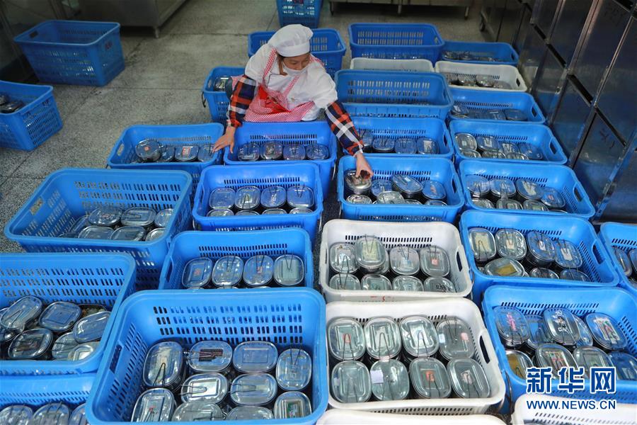 5月21日,铜仁市第十一小学的工作人员在给学生分装营养午餐。 近年来,贵州省铜仁市建立学生营养餐大数据监管平台,从食材的生产、配送到学校对食材的全程处理进行监控,追溯食品来源,确保食品安全。目前,铜仁市有3070所中小学及幼儿园被纳入监管范围,588家农业生产基地的生产信息录入营养餐智慧云综合服务平台。 新华社记者 欧东衢 摄