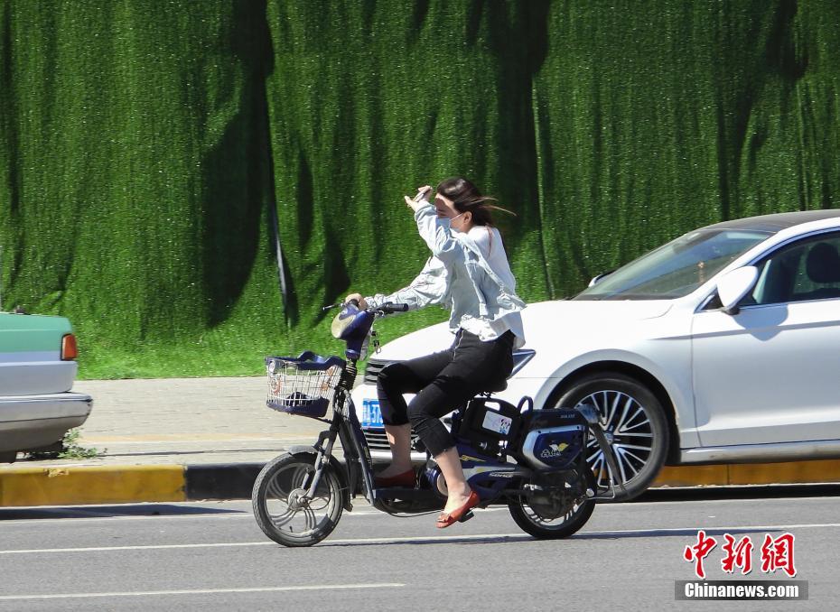 5月22日,河南郑州,街头出行的市民用手遮挡阳光。当日,河南郑州迎来入夏后的首个高温天气,烈日炙烤之下,当地最高气温达到37摄氏度。除了郑州,河南多地亦被高温笼罩,再加上大风助力,截至当日下午4时,河南省气象台连续发出158条干热风和高温预警。中新社记者 王中举 摄