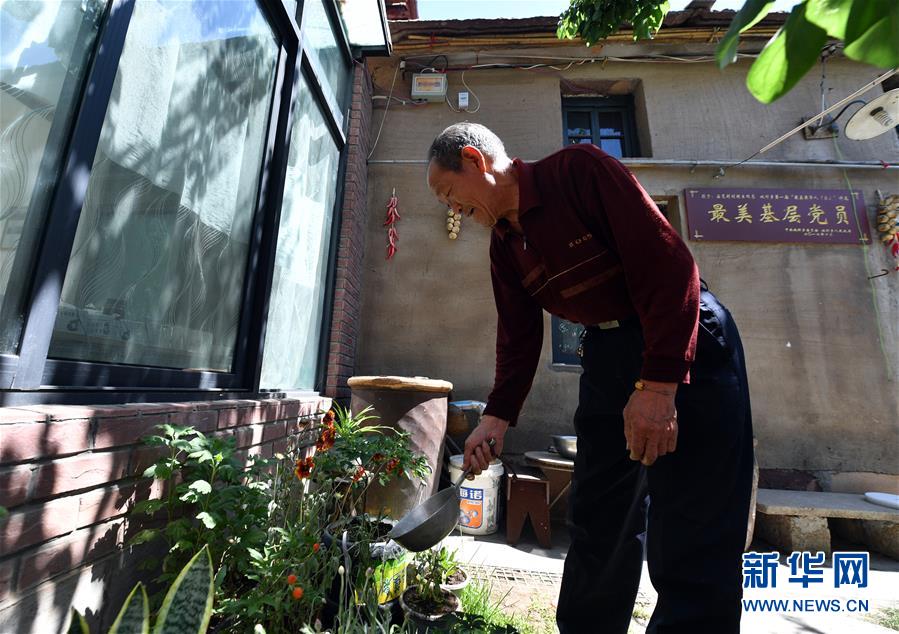 5月23日,村民刘明生在自家的农家乐里浇花。 背靠太行山的河南省林州市黄华镇庙荒村,如同它的名字一般,耕地少、荒坡多,曾经是有名的贫困村。近年来,庙荒村在积极改善农村基础设施的同时,充分利用一山(太行山)一水(红旗渠)资源,大力发展乡村旅游产业,带动村民脱贫增收。村里成立了旅游公司,通过政府引导与政策激励,鼓励农户发展农家乐、民宿。2018年底,庙荒村顺利脱贫。 新华社记者李嘉南摄