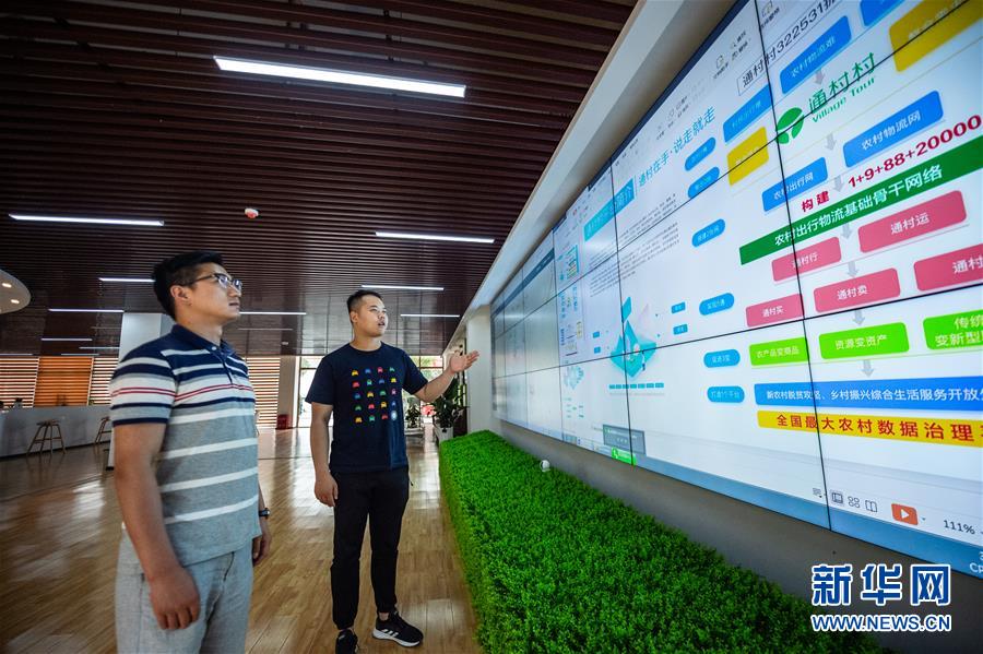 5月24日,工作人员在雷山县的调度中心向访客介绍“通村村”农村客运服务平台。新华社记者 陶亮 摄