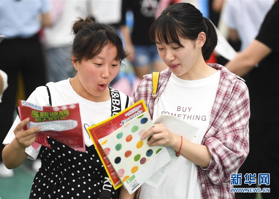 5月25日,学生们在安徽省亳州学院2019届毕业生就业洽谈会上寻求适合自己的就业岗位。
