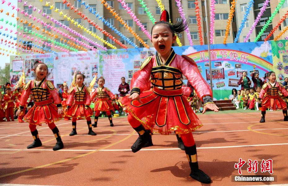5月28日,随着“六一”国际儿童节的临近,青海省西宁市一幼儿园内,小朋友在老师及家长的带领下载歌载舞,在欢声笑语中迎接自己的节日。图为幼儿园小朋友表演舞蹈《花木兰》。中新社记者 马铭言 摄