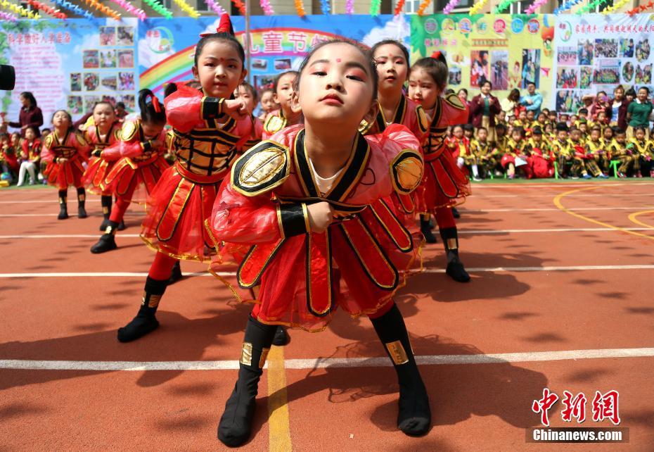 5月28日,随着“六一”国际儿童节的临近,青海省西宁市一幼儿园内,小朋友在老师及家长的带领下载歌载舞,在欢声笑语中迎接自己的节日。图为幼儿园小朋友表演舞蹈《花木兰》。中新社记者 马铭言 摄