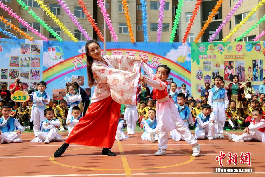 5月28日,随着“六一”国际儿童节的临近,青海省西宁市一幼儿园内,小朋友在老师及家长的带领下载歌载舞,在欢声笑语中迎接自己的节日。中新社记者 马铭言 摄
