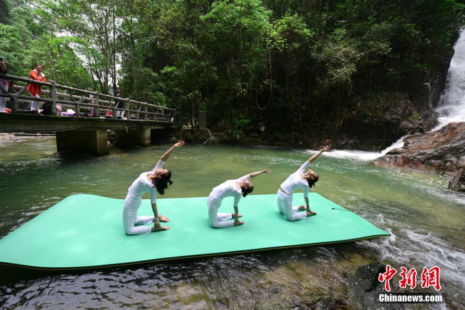 瑜伽爱好者挑战浮毯瑜伽。杨华峰 摄