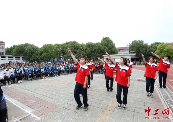 29日,武汉铁路公安局代表向湖北省孝感市闵集学校的武孝城际铁路“红领巾(共青团)”护路志愿队新队长授牌。