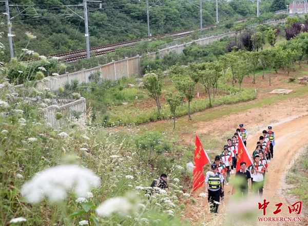 29日,武汉铁警带领武孝城际铁路“红领巾(共青团)”护路志愿队义务巡查武孝城际铁路,开展爱路护路宣传活动,庆祝“六一儿童节”。
