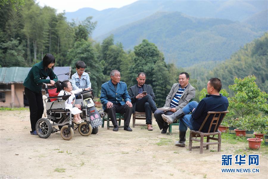 当地村民向彭超了解鸡蛋销售情况(5月29日摄)。 新华社发(刘欣荣 摄)