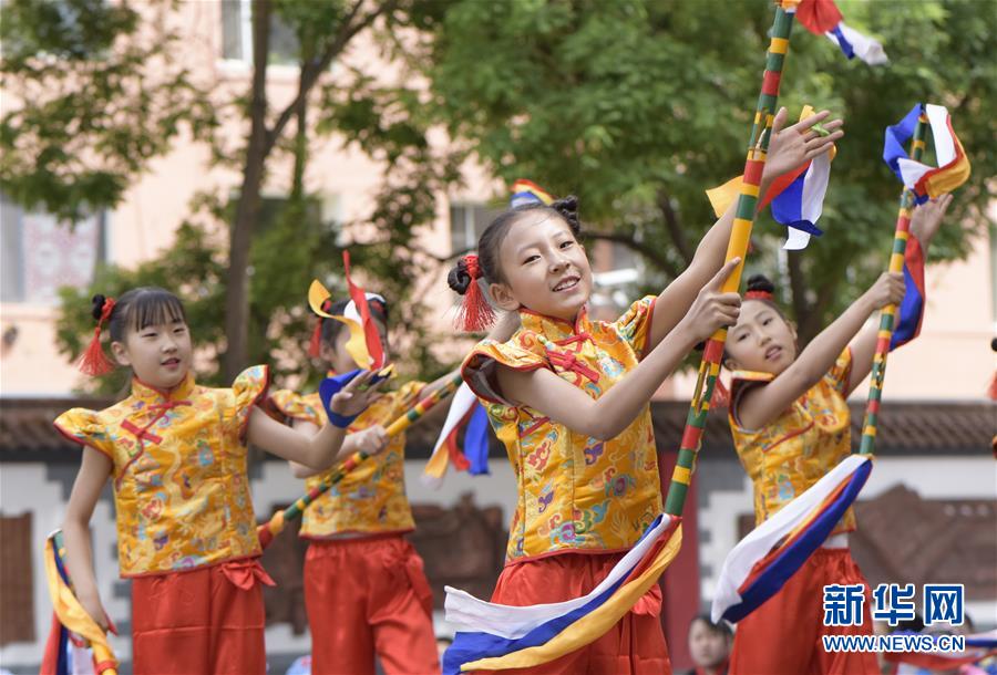 5月30日,呼和浩特市新城区满族小学的学生在表演满族花棍舞。 当日,内蒙古呼和浩特市新城区满族小学举办“缤纷民族情 炫彩花棍舞”主题活动,学生们身着艳丽的满族服饰,跳起优美飘逸的满族花棍舞,在浓郁的民族文化氛围中迎接即将到来的“六一”儿童节。 新华社发(王正 摄)