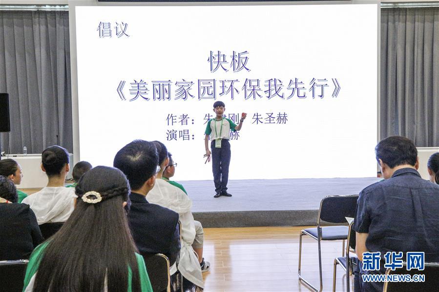 6月1日,来自天津调研团队的儿童代表通过快板展示调研成果。 当日,由中国儿童中心主办的“我的绿色生活 我的美丽家园”2019年“六一”国际儿童论坛在北京世界园艺博览会园区举办。本次活动联合了全国15家校外教育机构、国际学校、企事业单位及公益组织共同协办,近120名中外儿童代表及教师代表参与活动。 本次论坛活动于2019年3月启动,引导儿童以家乡为对象,从自己生活学习的环境出发,就节能、环保、生态等方面的问题开展调查研究,研究主题覆盖垃圾分类、塑料污染防治、场馆循环利用、人居环境改善、生态环境保护等多个领域。 新华社记者 张玉薇 摄