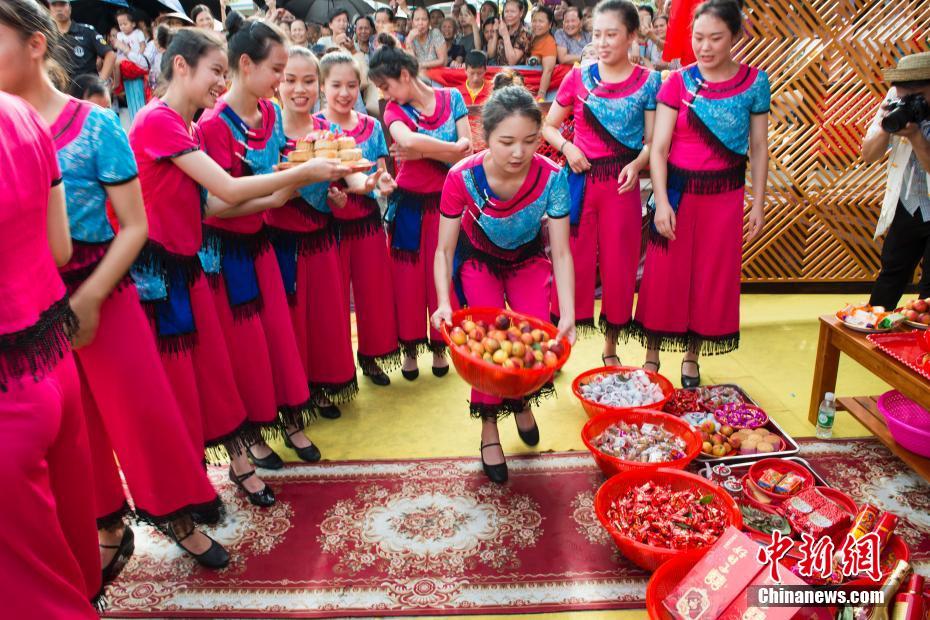 广西北海举行疍家婚礼 船队接亲船上拜堂