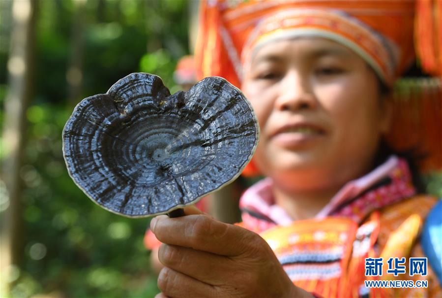广西金秀瑶族自治县长垌乡长垌村在脱贫攻坚中,利用当地良好的林地资源,引导群众发展林下灵芝种植产业实现脱贫增收。新华社记者 陆波岸 摄