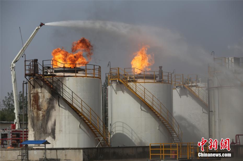 每年6月是全国“安全生产月”。6月4日,河南省工会“建功新时代主力军行动”现场推进会暨“安康杯”竞赛启动仪式在国家危险化学品应急救援(实训)濮阳基地举办。当日,现场逼真还原石油化工装置及储罐爆炸起火的紧急情况,通过单位自救、力量调集、控制火势、工艺灭火四个环节进行了大型仿真综合消防演习,以检验消防队伍整体灭火实战能力。众多机构密切配合的灭火现场宛如大片拍摄现场,甚是壮观。卢键 摄