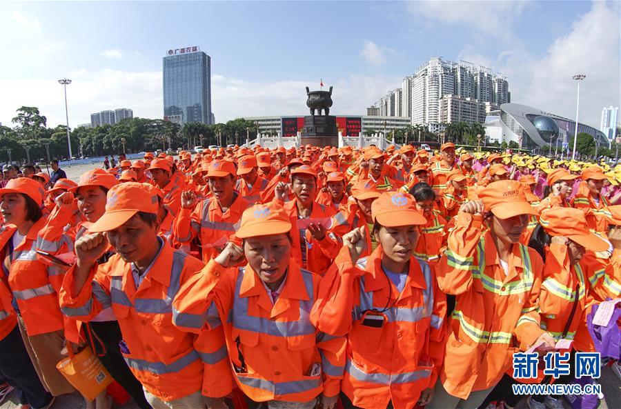 当日,广西南宁市“爱南宁爱分类”暨“美好环境与幸福生活共同缔造”活动启动仪式在南宁市民族广场举行。新华社记者 周华 摄