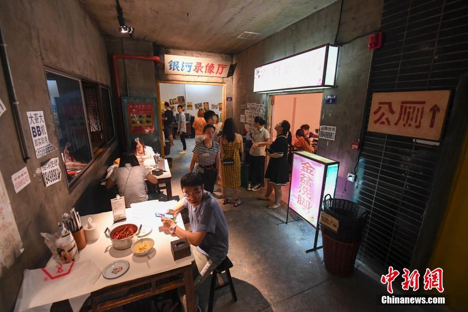 6月13日,文和友老长沙龙虾馆内坐满了食客。该餐厅拥有近5000平方米的超大空间,融合了老长沙的人文情怀和特色餐饮的新创意,完全还原了上世纪八十年代老长沙的风貌,受到了众多都市人的热捧。中新社记者 杨华峰 摄