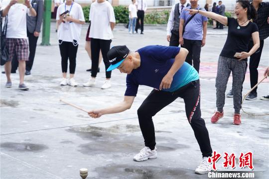 怀念儿时,父亲体验起了陀螺。 钟欣 摄