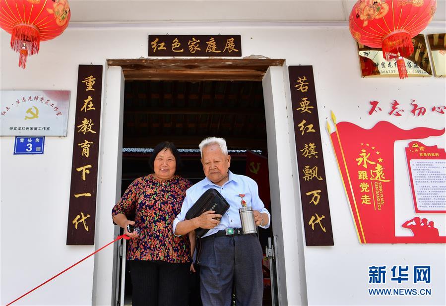 6月16日,在福建省长汀县南山镇长窠头村,钟宜龙老人的儿媳扶着他走出房门。 新华社记者 魏培全 摄