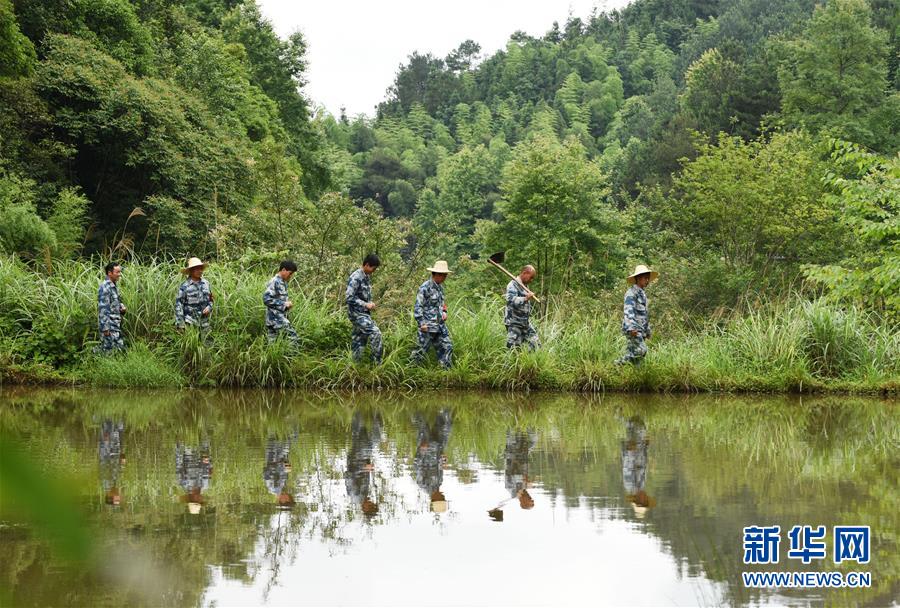 春蕾林场的护林员们在巡护森林途中(6月13日摄)。