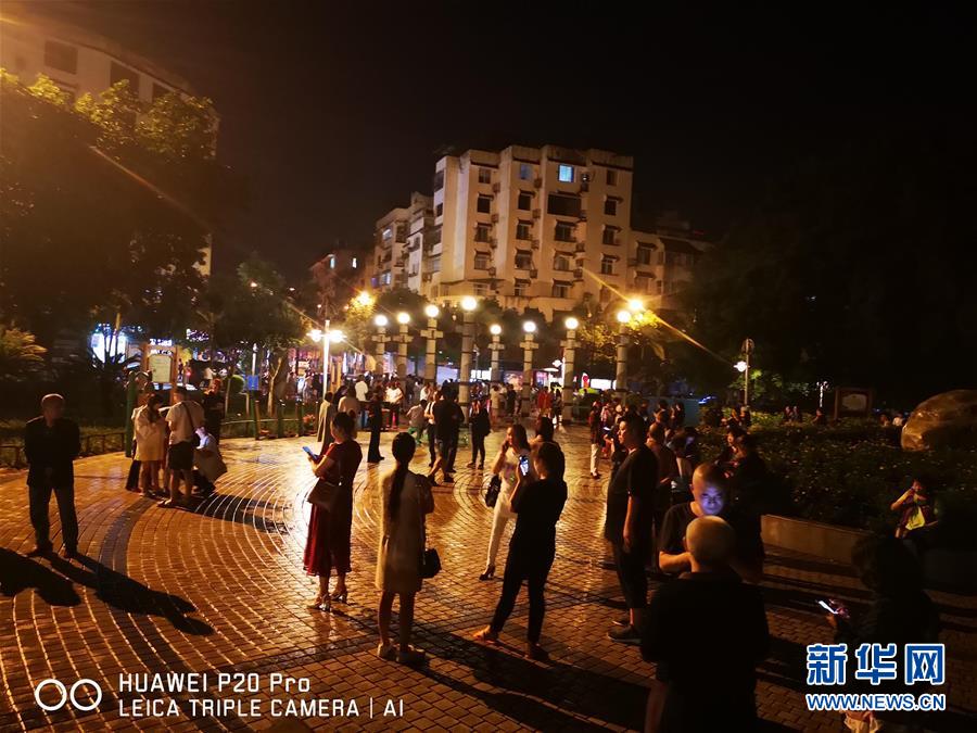 6月17日,在长宁县城竹韵广场,震后人们来到安全地带。新华社发(侯莉 摄)