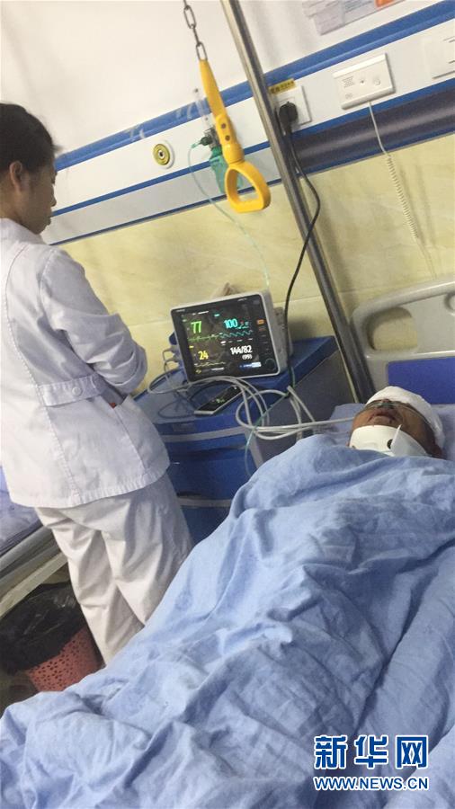 6月18日,在长宁县中医院,医务人员救治地震中的伤者。 新华社发(万敏摄)