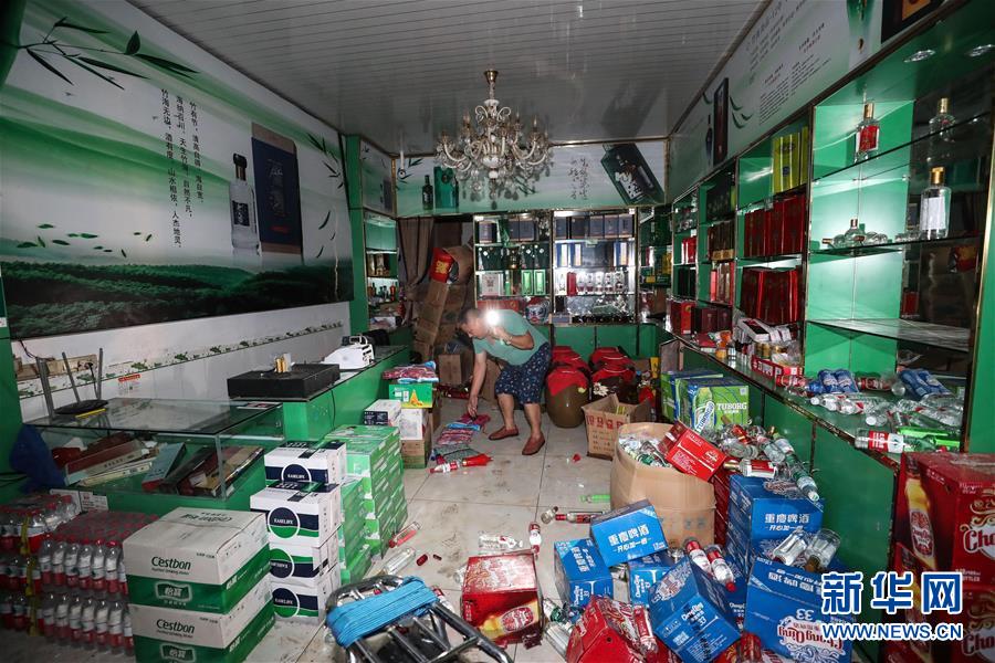 6月18日在长宁县双河镇拍摄的一家受灾商铺。新华社发(庄歌尔摄)