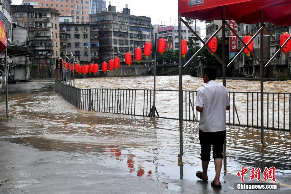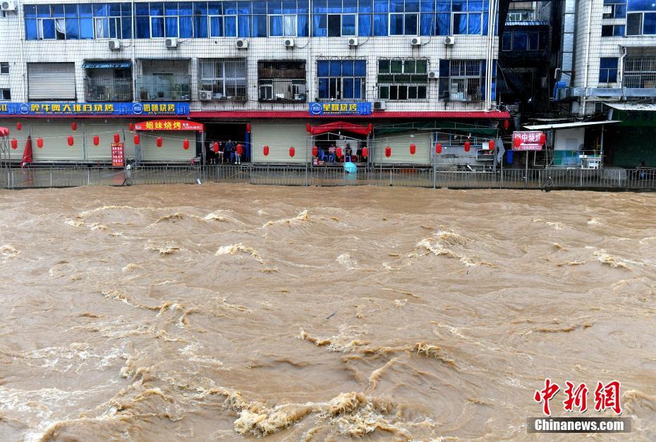 6月24日,受新一轮强降雨持续影响,福建省龙岩市新罗区苏溪河水位上涨。 中新社记者 吕明 摄