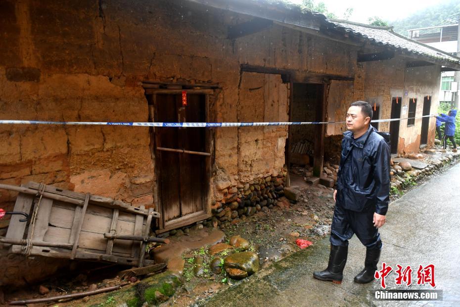 6月24日,福建省龙岩市新罗区铁山镇党委书记张永湘与村干部一起开展危房巡查工作。受新一轮强降雨持续影响,福建多地受灾。福建省防汛办当日披露,截至当天上午,福建已转移民众逾3.5万人。 中新社记者 吕明 摄
