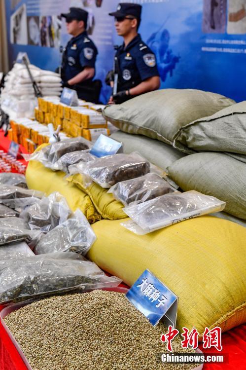 6月25日,广东省禁毒委员会办公室举行新闻发布会通报,2017年以来,该省各级禁毒部门共破毒品案件3.3万宗,抓获涉毒犯罪嫌疑人4.3万名,缴获各类毒品27吨;查处吸毒人员25.4万人次。图为发布会现场展示的涉案毒品。 中新社记者 陈骥旻 摄