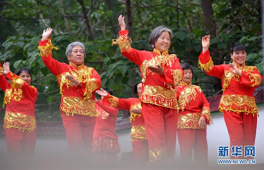 6月20日,“山里大妈”在村文化广场练习广场舞。 新华社发(赵东山 摄)