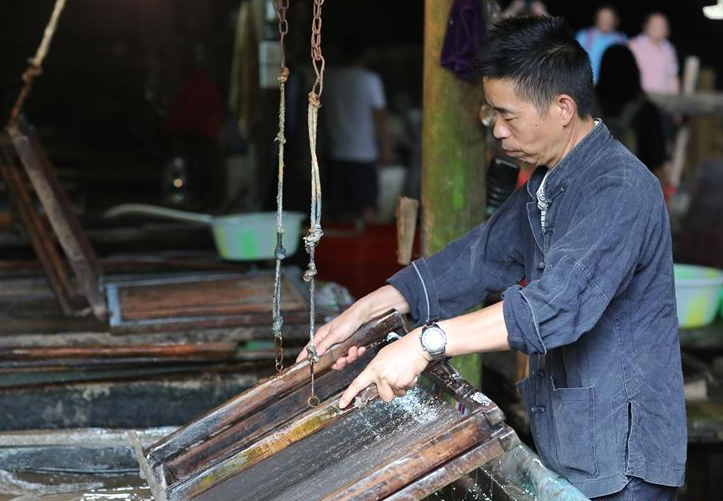 7月2日,安徽省铜陵市大通镇中心学校学生在暑期社会实践活动中参观大通小磨麻油制作过程。 进入暑期,各地学生纷纷参加形式多样的社会实践活动,度过一个充实的假期。 新华社发(过仕宁 摄)