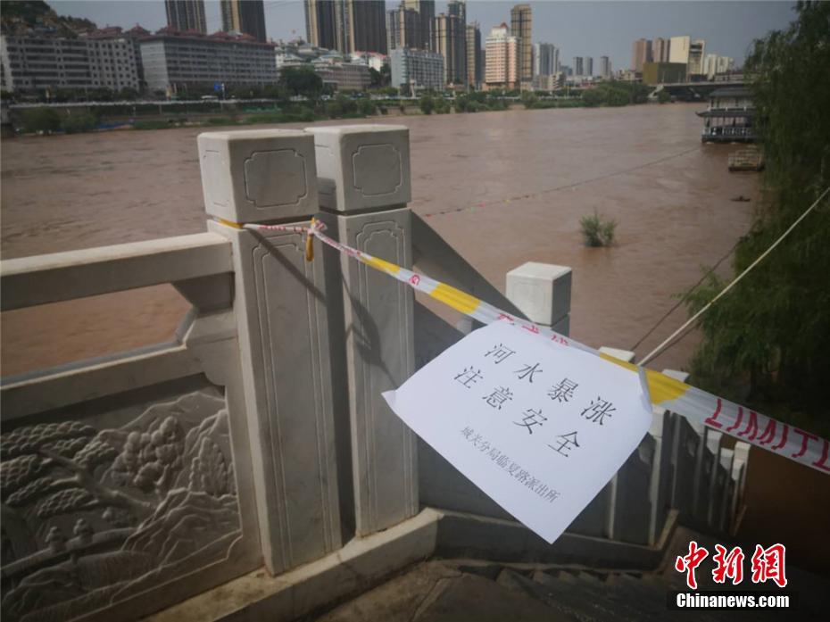 黄河兰州段水位持续上涨 河水淹到公园内座椅