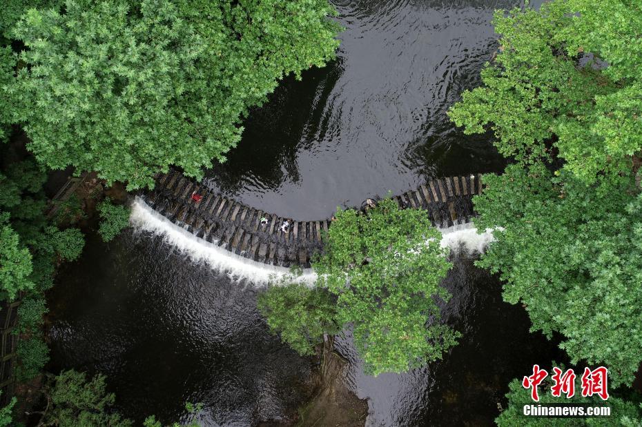 7月2日,俯瞰贵阳市阿哈湖国家湿地公园,民众在小车河百步桥游玩。贵阳市自2015年启动“千园之城”建设,计划将公园面积从2014年的6.8万亩增加至33万亩,人均公园绿地面积由10.95平方米提升到13平方米,截至2019年4月,贵阳市已建成城市公园、森林公园、山体公园、湿地公园、社区公园“五位一体”公园1025个,“300米见绿、500米见园”的目标正逐步实现。城中公园成为民众夏日乘凉游景好去处。中新社记者 贺俊怡 摄