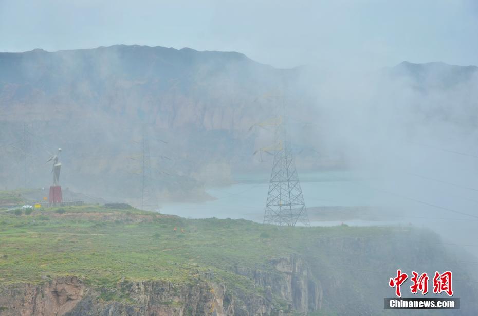 青海龙羊湖烟雨朦胧似仙境