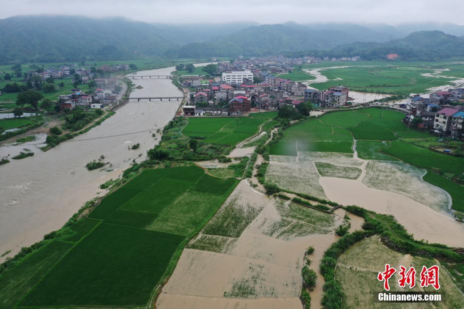 7月8日,航拍江西省上饶市铅山县多地乡村农田被淹。截至当日13时,本月6日晚开始的洪涝灾害,导致该省24个县(市、区)40.7万人受灾,紧急转移安置1.3万人,直接经济损失6亿元人民币。丁铭华 摄