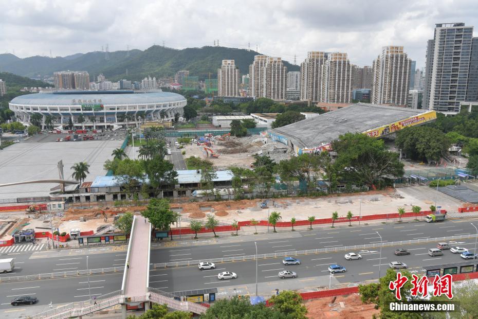 7月8日上午11时40分,位于深圳市福田区的深圳市体育中心内正在进行拆除作业的项目现场发生倾倒坍塌,4名施工人员被困。深圳公安、应急消防等部门赶到现场处置,现场救出2名被困人员并送往医院救治,仍有2人被困。据深圳市福田区政府最新消息,截至下午3时47分,事故中的一名伤者经抢救无效死亡。事故目前已造成1死1伤,2人被困,现场仍在紧张救援中。中新社记者 陈文 摄