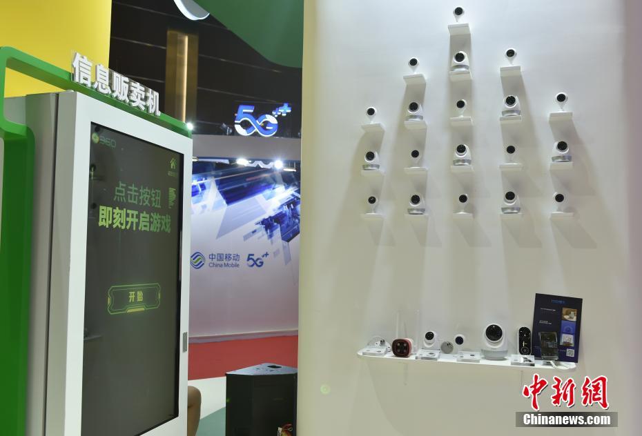 图为展商展示防盗拍摄像头和“信息贩卖体验机”。中新网记者 翟璐 摄
