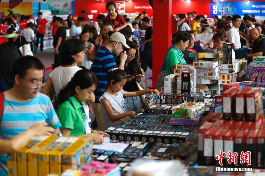 7月11日,第10届中国玩博会·北京站在全国农业展览馆开幕。今年有来自全球30余个国家和地区的210多个玩具品牌参展,涵盖拼插积木、拆箱盲盒、IP授权、科技智能、创意DIY、木制毛绒等各类产品。展会将持续至14日。图为小朋友挑选玩具。中新社记者 富田 摄