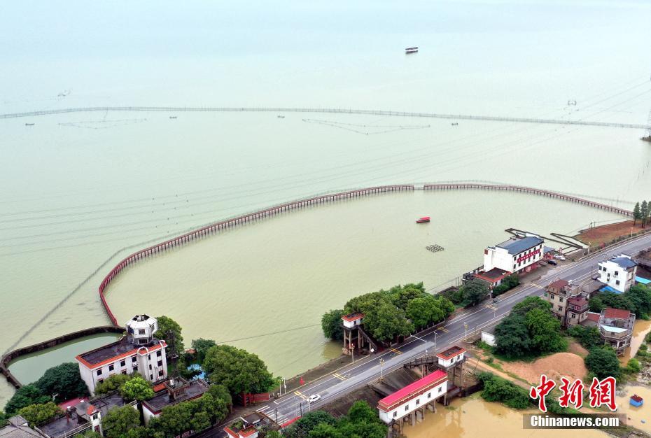 航拍上游洪水汇入南昌湖泊 鄱阳湖水位持续上涨