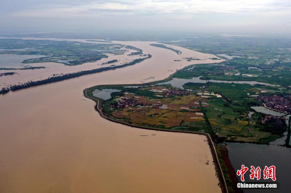 航拍上游洪水汇入南昌湖泊 鄱阳湖水位持续上涨